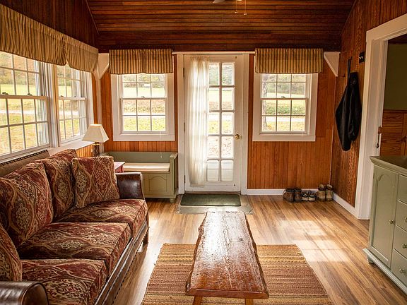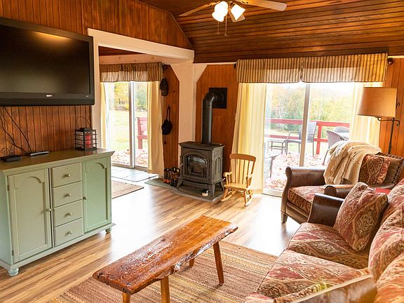 CHARM, CHARM, CHARM is how we describe this quintessential 1805 Farmhouse featuring wide plank pine floors, chestnut beams and a large working brick fireplace in the living/dining room which opens onto the kitchen with stainless steel appliances, custom cherry cabinets and dark green soapstone counters.The house is sunny and bright all day long. Off the kitchen and two steps down is a second family room with a gas fireplace/stove. Two sets of sliders take you to the back deck overlooking 3.98 acres of private, lush green field. Two bedrooms and a bathroom complete the first floor. Enjoy a wide year-round view which only gets better in the fall and winter seasons. On the second floor are two large bedrooms with plenty of closet space and a full bathroom off a small sitting area. This is a true charmer for the antique home buyer. The house is in immaculate condition. A detached two-car garage, a large she-shed and a third storage shed complete this magnificent property located minutes (4+/- miles) to downtown Ludlow and Okemo Mountain.