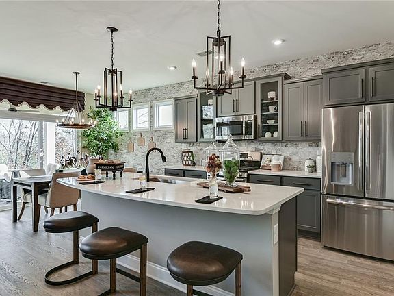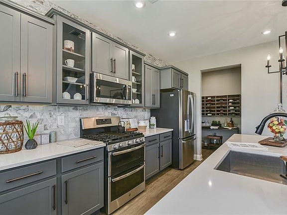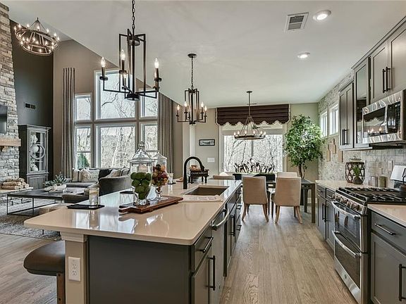 - Kitchen Features: Cabinets Stain, View to Family Room, Kitchen Island, Pantry Walk-In, Breakfast Room, Solid Surface Counters