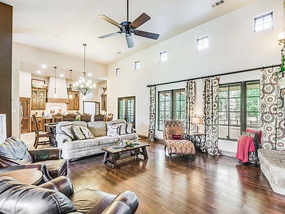 Secluded, gated 10.5 ac property with 3 BR/2.5 BTH custom home 20 minutes from Waco/Temple. Open-concept great room has 14 foot ceilings. Kitchen includes Viking range. Master suite (1st floor) has access to the outdoor sitting area, his/her walk in closets (his doubles as a safe room). Master bath has heated floors, copper soaking tub, and travertine shower with body sprays. A detached workshop (540 sq ft, 1 BTH) is steps from the main house. Refrigerator, microwave and chest freezer convey.