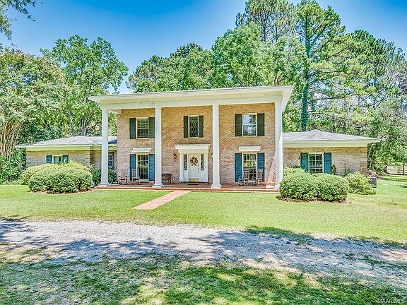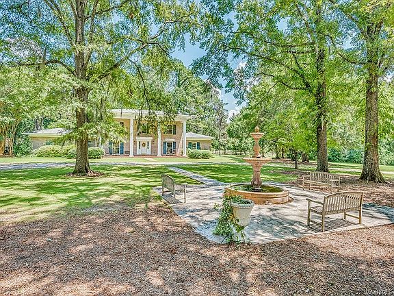 Situated beautifully behind towering trees this stately home is located on 5 acres surrounded by wood fencing. Enter through the circular drive and in the center of the front acreage is a fabulous fountain to enjoy from your spacious covered front porch or front patio. Special finishes include dental crown molding, brick floors and hardwood floors. To the right of the two-story foyer is the living room with large windows with nice views of the acreage. To the left of the foyer is the dining room and just beyond is the family room with wood beams, a wall of built-in cabinetry and a wood-burning fireplace. Master bedroom and guest bedroom are conveniently located downstairs and a private guest suite on the opposite side of the home. Adjacent is a home office that would also be the perfect nursery, sewing room, etc.... Possibilities are endless. A second family room is open to a large kitchen that boasts an abundance of counterspace and cabinet space and a breakfast bar with work island. Upstairs includes three bedrooms with two having large walk-in closets and one with double closets. Storage galore - upstairs hall offers a wall of 9 built in cabinets. Two car carport , large two-story storage room to the left of the property. Last but not least, the Gunite swimming pool will be your favorite spot to enjoy our warm days! Make your appointment today to see this home located in desirable Foxwood!