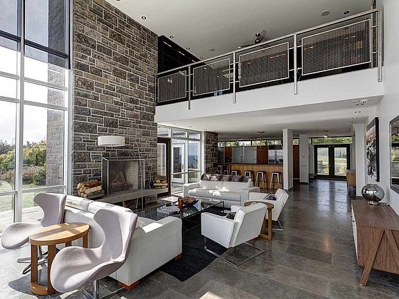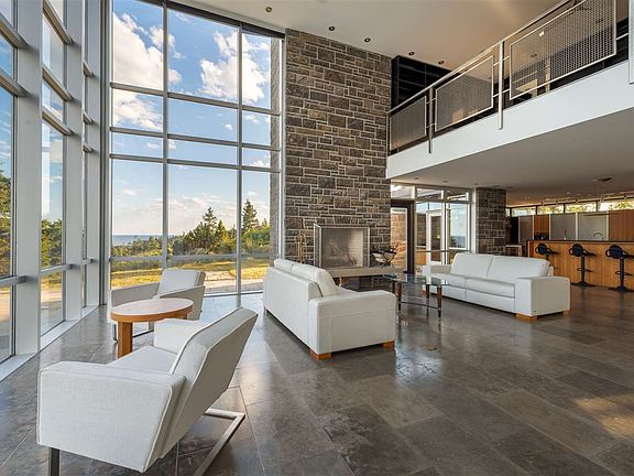 Just a short 20 minute drive outside of Halifax this spectacular and unique home is surrounded by the most astonishingly beautiful scenery where the coastal barrens give way to rugged granite cliffs, pounded by the Atlantic surf. Overlooking the Atlantic, this 'one of a kind' contemporary residence is located on a private 2.7 acre estate that includes 550 ft of rugged oceanfront bordering 1800 acres of pristine Crown Land. This modern 6,790 sq ft masterpiece of concrete, steel, stone and glass offers breathtaking 360 degree views and was once a WWII observation tower strategically positioned to guard the coast and Halifax Harbour. Renowned designer Erla Laurie came upon the abandoned military installation and was inspired to make it her home. This iconic residence includes a main level open concept floor plan designed with entertaining in mind. The great room with its 20' walls of glass and soaring ceiling is the main focal point of the main level and provides access to the outdoor terraces and the enchanting, 'ocean view' infinity pool. The dining room with its feature, marble wall and is perfect for more formal occasions, while the beautiful cherry wood and soapstone kitchen offers a more relaxed gathering space for friends and family around the over sized eat-in island. The main house includes a wonderful open, library/office area on the second floor and 3 bedrooms, including the sumptuous master suite with luxury spa en suite, wet bar and private roof top deck with hot tub and wood burning fireplace. There are 2 more equally beautiful guest suites with en suite bathrooms and a commercial elevator that links all the levels to the top floor roof deck. Accessible from the main house via walkways on 2 levels a separate, 2 storey guest house provides visitors with their own private space and has a fully equipped kitchen, sitting area and bedroom with en suite.
