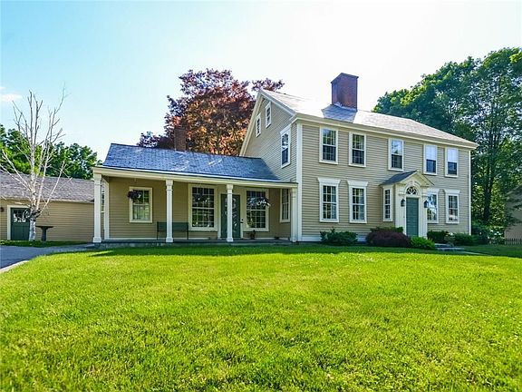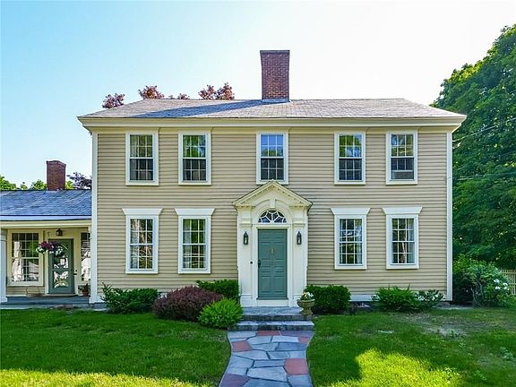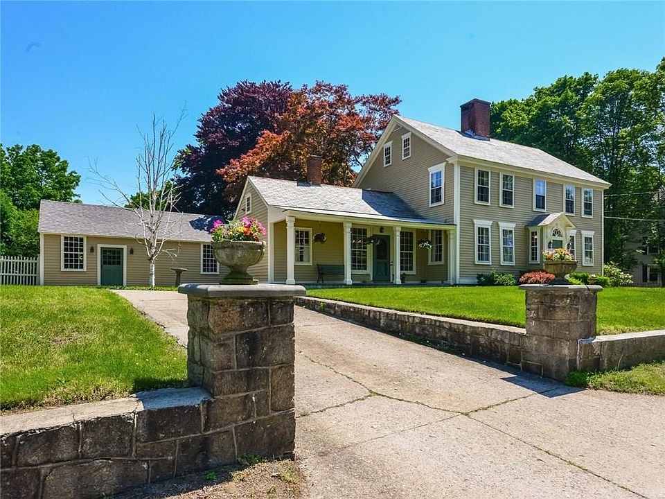 Introducing one of northern Rhode Island's most admired historic estates. Step inside the classic Federal Period entry into this beautiful home and explore over 2600 square feet of luxury living space. The beautiful floors are golden wide board pine. A center entry hall divides the fireplaced living & dining rooms. The dining room ceiling displays a unique subtle lattice paneling Classic 6 over 6 mullioned windows bathe the principle rooms with natural light. From the fireplaced dining room you enter an enormous and open combination kitchen & informal breakfast room. The updated and well equipped kitchen has a large pantry, hardwood cabinets, corian counters and stainless steel appliances, including a paneled Sub-Zero refrigerator. In addition there is a laundry room and full bath on this floor. The second floor can be entered by two graceful staircases. One at the front hall and another off of the breakfast room. On the second floor there are three bedrooms & a full bath: One large bedroom has a walk-in closet, plus there is another equally large bedroom. Both bedrooms have fireplaces. Plus, there a third guest bedroom. Another large Ceder closet can be found on the third floor. The estate comprises over an acre of manicured grounds which includes a huge stone terrace, very private gunite swimming pool, cabana with full bath and large four car carriage house. The carriage house sports a second floor available for any expansion