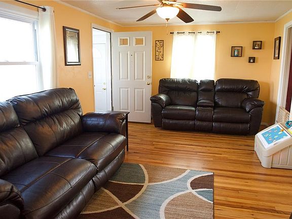 Pristine! Move in ready cape cod w/ awesome location on a dead end street & near everything! Sidewalks & street lights ~ GORGEOUS gleaming hardwood floors, large eat in kitchen w/ appliances, plus formal dining room, 1st floor laundry, BONUS room upstairs (office, playroom?), spacious entry foyer w/ brand new front door, HUGE new brick patio w/ built in fireplace, fully fenced yard, New furnace 2012, Central Air 2014, new electrical panel, new roof on detached garage, low maintenance vinyl siding. Welcome Home!
