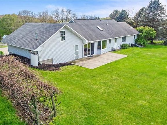 Enjoy one level living on 1.4 acres with stunning views and lots of fruit-bearing trees! This ranch features granite countertops in a naturally lit kitchen with a breakfast nook and pantry storage. The enormous 3-part basement has an unfinished pool table room, utility room (with walk-up outside access) and a large workshop. The tongue-and-groove breezeway leads into a spacious 2-car garage with stand-up storage and a new 100 amp sub panel. New water softener and filtration system installed in 2017, new well pump and pipes 2017, new carpet in bedroom in spring 2020. Large driveway. Perfect for entertaining! Minutes from historic Saxonburg!