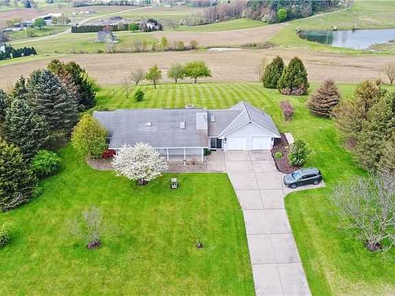 Enjoy one level living on 1.4 acres with stunning views and lots of fruit-bearing trees! This ranch features granite countertops in a naturally lit kitchen with a breakfast nook and pantry storage. The enormous 3-part basement has an unfinished pool table room, utility room (with walk-up outside access) and a large workshop. The tongue-and-groove breezeway leads into a spacious 2-car garage with stand-up storage and a new 100 amp sub panel. New water softener and filtration system installed in 2017, new well pump and pipes 2017, new carpet in bedroom in spring 2020. Large driveway. Perfect for entertaining! Minutes from historic Saxonburg!
