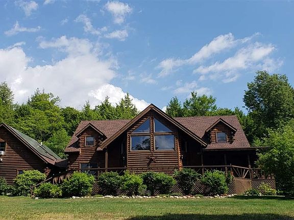 Exquisite Log Home on 14 acre property in the foot hills of the Adirondacks is surrounded by fruit trees, berry bushes, large raised bed gardens. The Mountain spring fed well provides delicious water at 50 gal/min. The 80 Solar panels installed 2016 with battery backup assures your needs are always met. Five bedroom, Lg kitchen, dining and living area promote a sense of open contentment with full window complement in the prow allowing natural light into the home. In-law suite above garage.Addl acres avail