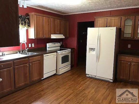 Air unit installed on August 2, 2018. Split bedroom plan with 3 bedrooms and 3 full bathrooms. Covered front porch slab is granite. Enclosed rear porch off laundry room. Eat-in kitchen with plenty of counter and cabinet space. Formal dining room with built in cabinet. Spacious living room. Master bedroom with built-in cabinets. 12 x 12 utility building inside the fenced back yard. Apple and pear trees in the backyard and banana and fig trees in the front yard. 4-car garage/shop with a 20 x 20 attached office space or storage room. Garage/shop offers nearly 1,500 sq.ft. of space. Behind the building is a second concrete storage area that could double as a tornado shelter. House is 2 miles from both Athens Tech and the new Kroger Marketplace, shopping and restaurants.
