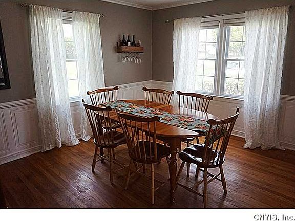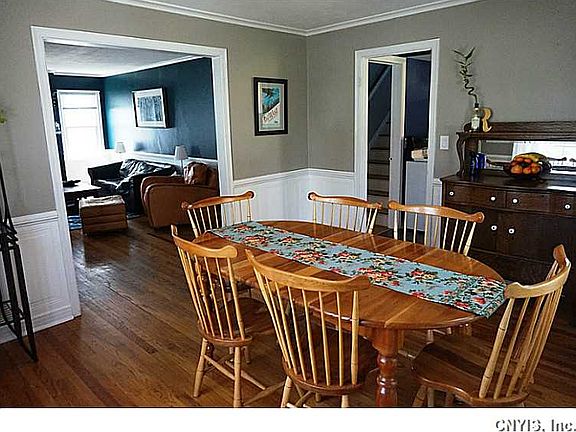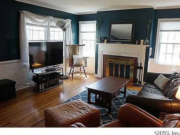 DEWITT CHARMER! Character abounds in this well-kept 3-bdrm cape boasting gleaming hardwoods & generous sun-lit rooms! First floor offers a front hall flanked with closets, sizable living rm with fireplace, formal dining rm, sharp kitchen, half bath & bedrm/office with slider to the adorable patio & sprawling yard. Upstairs, 2 large bedrms with nooks, updated full bath & ample closet space. Clean, dry basement could be finished & the 1-car garage offers more storage or parking next to the secluded side yard of this double-lot. Close to schools, shops, university & hospitals. Central air, too!