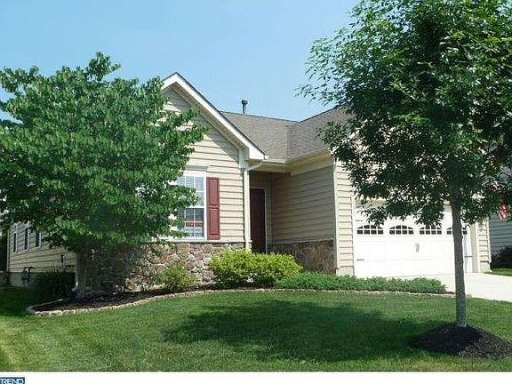 Welcome to the expanded Piedmont model in the over 55 community of Hearthstone with clubhouse and gym. Hardwood flooring flows throughout this one floor home. Bedrooms are wall to wall carpeting. Custom upgrades include recessed lighting and ceiling fans and surround sound. The kitchen has cherry cabinetry with pull out shelves, Corian counter tops and all appliances are included. The gas fireplace can be enjoyed from the living, kitchen and sunroom areas.Bedroom #3 is presently used as an office with built in cabinetry. Slider leads to paver patio and hot tub. Underground sprinkler system takes care of the landscaping while the association mows the lawn! The garage was made 2 ft longer and has cabinets and storage. The crawlspace is insulated and heated for additional storage.