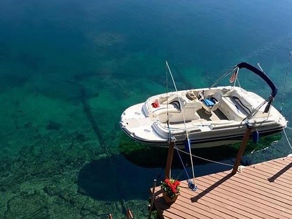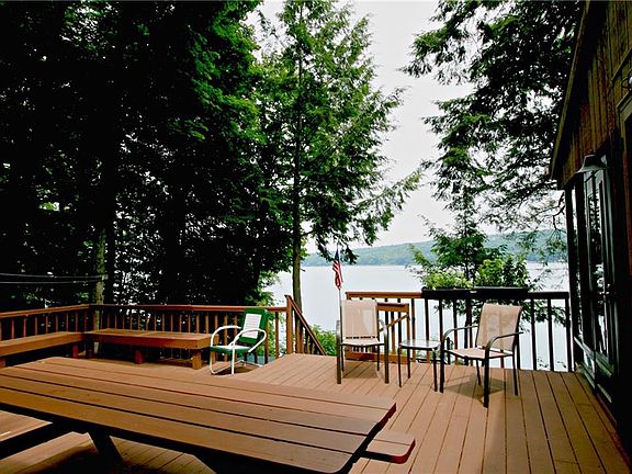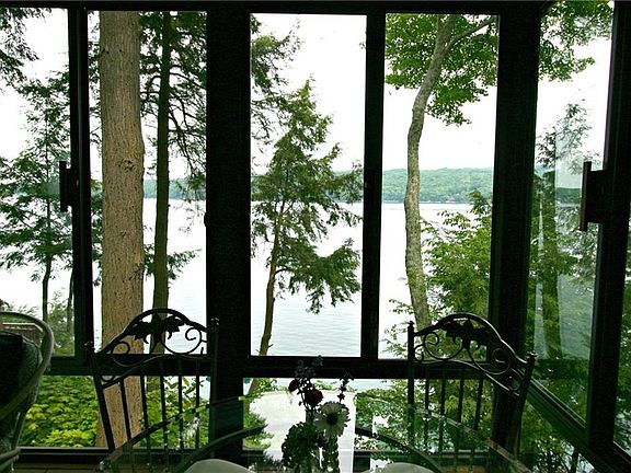 First time offering on the market, McClurg built & renovated 5 bedroom cottage, tucked away in a lovely wooded setting with 100 private feet of waterfront, multiple decks for entertaining, tram for easy access to the lake, permanent dock, screened in porch overlooking the water, great room with rich hardwoods and fireplace, 1st floor bedroom, and lush landscaping. This beautiful Transitional cottage was built and loved by one owner and wonderfully maintained and updated each summer. The cook's kitchen has granite countertops, the "family style" dining area features an antique church pew, the elegant master suite with second floor balcony is an unexpected surprise in this rustic haven. Summers should be spent in a place like this!