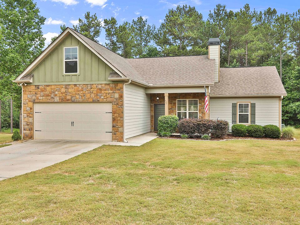 Gorgeous ranch with 3 BR/2 BA on main, plus a finished Bonus Room! Home features high ceilings, and wood burning stone fireplace. Kitchen features separate pantry and breakfast area. Master BR with double vanities & separate shower/garden tub. 2 car garage, patio, laundry room, concrete-fiber siding w/stone accents on 1.6 acres. This home is minutes to Downtown Newnan and I-85 for an easy commute to Atlanta and Hartsfield-Jackson Int'l Airport.