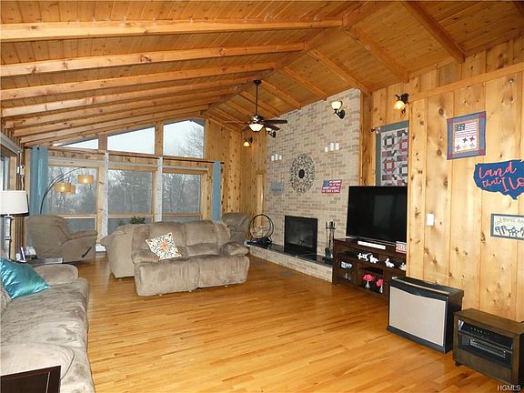 This lovely oversized ranch home sits on 1.9 ac, offering a tranquil setting, amazing skyline views, at the end of a private road. With this solar powered home, youâll have virtually zero elec., bill and the heating could easily be converted to elec., for greater savings. There is no shortage of space, w/ ample sized rms throughout, tons of storage and a finished, walkout lower level that doubles the living space to more than 5500 sqft. Features include, 4 bdrmâs, 3.5 baths, a Master bdrm, w/ a newly reno bath and private balcony. The impressive great rm has an office/den, cath ceiling, gleaming H/W Flrs, FP and patio doors to an oversized wrap around deck. You will never have a shortage of cabinets in the F/DR or kitchen. The Lower, Level, has a huge fam/multi-purpose rm, several lg storage rms and a lg workshop and a temp controlled walk-in vault. Great commuter location and only a few mins to 17 and NYC commuter train, Legoland, Resorts world Casino, Bethel Woods and more.