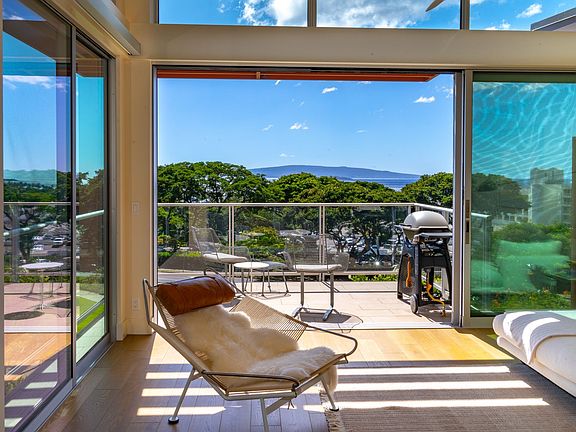 Makali'i is a premier, resort-style gated community located in Wailea, offering a blend of luxury and Hawaiian culture. This exclusive development features 68 townhomes, each crafted with elegance and contemporary design. One of its finest units is a 3-bedroom, 3-bathroom newer construction, beautifully and tastefully furnished. The unit is modern and sleek with floor-to-ceiling and wall-to-wall glass that opens to expansive panoramic views through large sliding glass doors and windows.