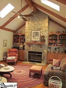 RARE RIVER FRONT OPPORTUNITY in Jones Gap! This 3BR/2BA home is situated on 1.5 acres, HW flooring, vaulted ceiling in GR w/skylights & rock FP, built-in bookcases. DR, sunroom w/access to large deck. Tennis court. A wonderful place to vacation all year long. MLS 1222820 $225,000