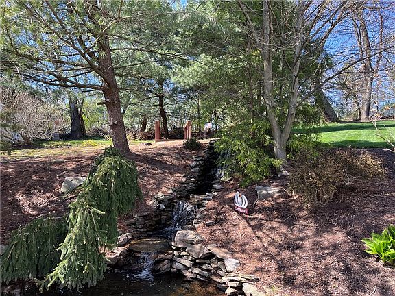 You do not want to miss this pristine home that reflects the loving care provided by the original owner. You will enjoy the 8' large granite island or hosting holiday parties. The dining room with picture frame crown molding provides an aura of elegance. The inviting family rm is centered by a very handsome hearth w/gas starter, complemented by dual benches and crown molding. Best of all is the picturesque view of the backyard with lovely waterfall and koi pond and amazing gardens. When sitting on your patio you can't help but feel close to nature and say to yourself "no need to travel to a park". The owner’s bedroom is huge with a quaint sitting area. The spacious game room features the second fireplace. Updates too! Front windows and Patio doors '22, Roof in '18, Zoned Irrigation System. The convenient location is ideal just minutes to countless shopping venues at the Robinson Mall and The Pointe, Moon Schools, Pittsburgh Int'l Airport. This home has it all inside and out!
