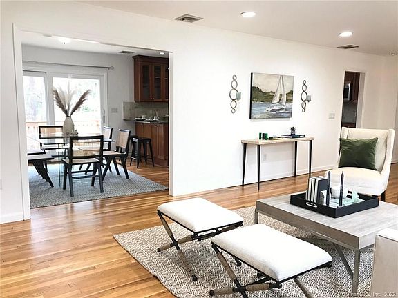 Shows beautifully This fresh and inviting home has so much to offer today's buyer. Amazing kitchen updated with custom cabinetry, granite counters & breakfast bar, newer stainless appliances, open living room with fireplace, dining room with sliders to large deck overlooking the flat back yard. The living/dining/kitchen flow is perfect for entertaining. Freshly painted throughout, newly refinished wood floors, 2 fireplaces The lower level features an oversized family room w/ fireplace & French doors, a guest bedroom, an office/workout/yoga room, and an updated full bath/laundry room with new "high end" washer/dryer. Newer heating/cooling system. Flat property- a rare find in North Stamford- and the driveway is located on a cul-de-sac street. We have a firepit too Convenient lower North Stamford, just a short drive to the Merritt and LaRocca's Country Market. This pretty home offers flexible open space and a versatile floor plan to accommodate many living situations, so if you're a savvy buyer, this could be the house you've been waiting for
