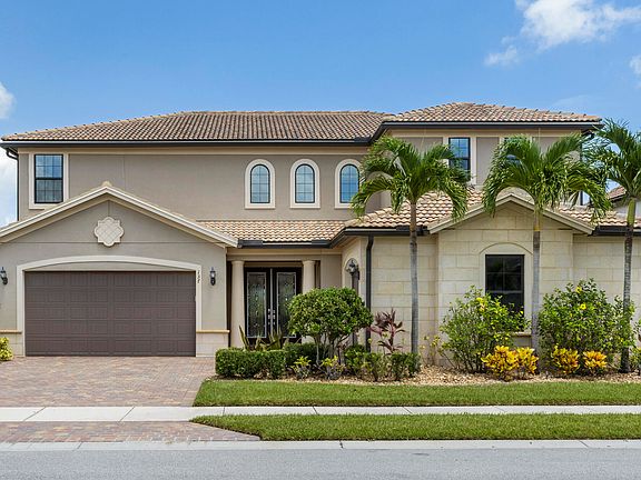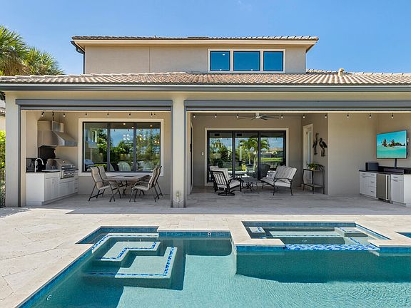 Exceptional value in gated Sonoma Isles, impeccable condition, 5,393 sq ft with important CABANA BATH, 5 BR/6.5 BA. Largest covered lanai w/remote screens, gas BBQ kitchen, wide lake & island preserve view, heated salt water pool and spa w/waterfall, fire bowls, gas fire pit, raised garden beds, fenced yard. Extensive structural and design upgrades, smart home, 3 AC's, whole home gas generator, impact glass, plantation shutters, crown molding, tinted windows and 2/1 split garages with storage, built in drop zones at both garage entries. The 2nd floor home theatre is 6th BR on tax roll with dual closets. Ext gourmet kitchen with pantry closet and large island. Extended owners suite, retreat, lg custom closet and enlarged shower. Grand staircase to 2nd floor features 3 BR/3BA, loft, media. Sonoma Isles provides its residents with a gated entry and a modern Clubhouse featuring indoor mail room, fitness center, activity/game room, catering kitchen and gathering room for community social events. Enjoy a beautiful lake front view from the heated resort style pool and spa, BBQ's, tot lot, fire pit, scenic walking trails, pickleball and tennis. Prime location just west of the Florida Turnpike and I-95 in Jupiter.