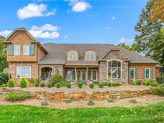 Now being offered via online bidding. Please note all Auction terms and conditions prior to registration. Any "price" shown is not Sellers asking price but rather current bid plus buyer premium. Situated in the Town of Bermuda Run within the gated community of Bermuda Run Country Club-James Way, This home stands as a testament to a perfect fusion of two very popular construction styles known as French Provincial and Rustic Chic. Its elegant carriage house, arched entry, and strategic location atop a knoll overlooking the pond make it truly special. The property’s meticulous design, construction, and adornment with the finest finishes reflect the expertise of skilled craftsmen. From the awe-inspiring wood beam ceilings of the carriage house to the intricate wood trim moldings, coffered ceilings, recessed niches, and sculpted ceilings, every detail showcases a commitment to unparalleled quality.*Excellent storage with 983 sq.ft UL heated space another 484 sq.ft UL unheated.