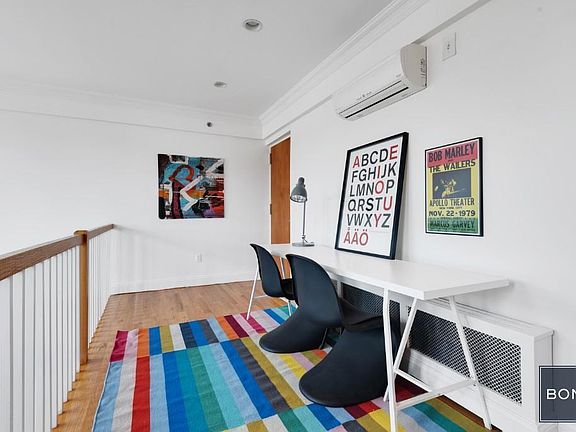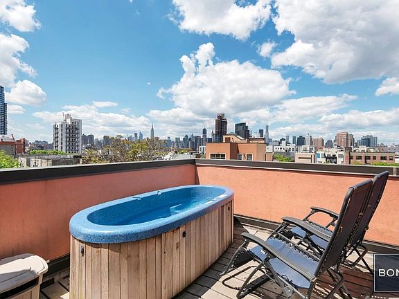 Accepted Offer and contracts are out. This captivating light-filled loft like duplex boasts 17.5-foot ceilings, a renovated open kitchen and sliding doors leading to a charming private balcony, perfect for al fresco entertaining. This beautiful home includes two private outdoor spaces with charming city views, a windowed home office and additional loft space that lends itself to a second bedroom or sitting area. The apartment has ample storage space, with a private entry vestibule serving as a mud room. Up the open stairway is the loft space, currently configured as a private home office space and separate seating area, leading to the large private terrace. The entire home is tastefully modern with hardwood floors, recessed lighting, marble bathroom, high ceilings, washer and dryer, and zoned air conditioning. All this, in a boutique walk-up condominium with low monthlies and a 421A abatement until June 2024 located two blocks from the new ferry station as well as the G train. Just a short 20 minute ride from Midtown Manhattan. Enjoy all that Greenpoint has to offer through the nearby McCarren Park, as well as the charming McGolrick Park and dog run and a plethora of restaurants on burgeoning Manhattan Avenue. This is a rare find, so make your appointment today.