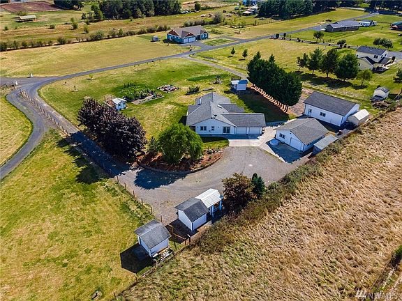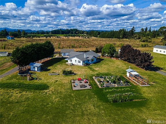 Custom PNW ranch home has it all! 3bed 2bath on 2+ acres w/ wrap around patio, 2 bay shop w/ loft, veggie/flower gardens, chicken coop w/ mature chickens, & 728 sf guest quarters w/ 1bed & 1/2bath! Primary home features vaulted great room, eat in kitchen, sunroom, office & stunning view of all the open space you're dreaming of! Garage is temp. school room & custom cabinets stay! Outside find a picturesque potting shed, whimsical playhouse & swing set, & dream fire pit. Near I5. Video available.