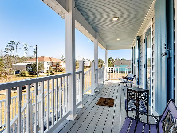 Beauty on the Beach! This rare 1 year old home was custom built by the owners, is only a 3-5 minute walk to the beach, has a view of the shimmering MS Sound from the street, captures the sea breeze on the porches, and wows with character being designed and built by an artist wife and retired carpenter husband. This 2 bed 2 1/2 bath pristine home offers an open concept with granite isle in kitchen, quartz countertops, and custom archway. A built to last beach oasis featuring premium quality thick vinyl siding, r6 foam insulation, metal roof, hurricane shutters, birch wood flooring, pine walls/ceilings, ceramic tile, heat pump water heater, workshop, and custom firepit on almost 1 acre. VRBO investors dream - furniture is negotiable. Better hurry, this rare custom gem will go FAST!
