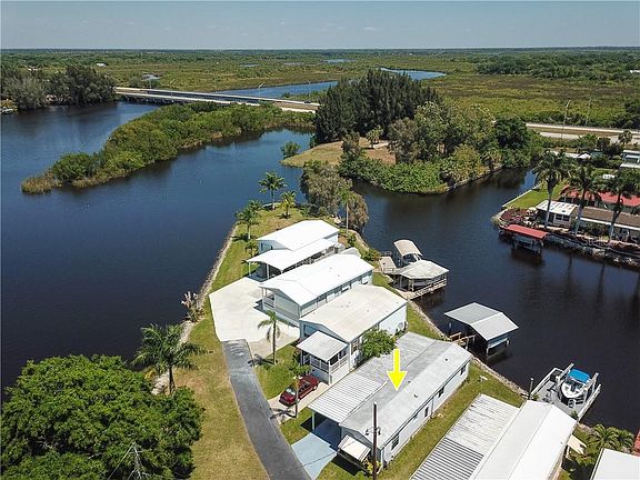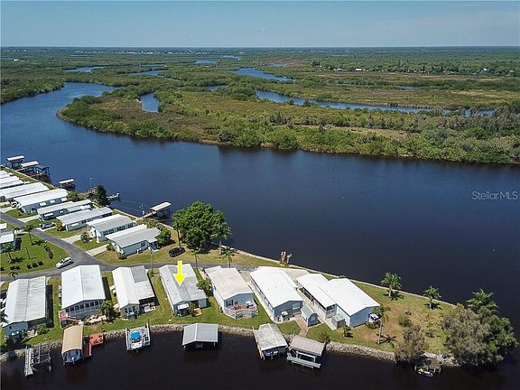 This Florida waterfront paradise with the AMAZING VIEWS is ready for YOU. Call to see it today; it will be gone in a flash. Live the Gulf Life and keep your boat right outside your back door on the deeded covered boat slip and dock. Fishing, boating, sunshine & fun times on Shell Creek, the Peace River, the Myakka River and all around Charlotte Harbor are waiting for you. Lazy Lagoon Mobile Home Community is designed and intended for residents age 55 or over. This active community offers a clubhouse, laundry facility, boat ramp, shuffleboard court, private road and extra parking for guests. The purchase price of this home includes the land co-op ownership fee. Recently renovated kitchen. New ('21) waterproof vinyl plank flooring in living room, kitchen, hallway and both bedrooms. Punta Gorda is consistently voted as one of the best places to retire. Living in SWFL you'll enjoy award winning restaurants, special events, shows and expos at the Event Center, weekend farmer markets, fishing, boating, world famous beaches, golfing, shopping at Fisherman's Village, amazing sunsets and so much more.