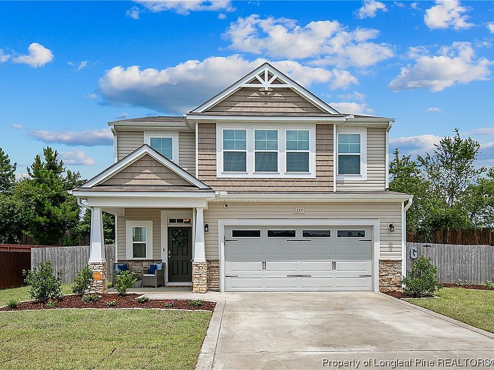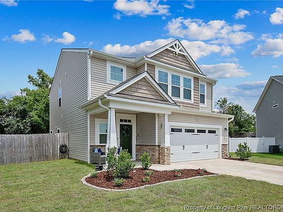 Welcome to this beautifully maintained 4 bedroom, 2.5 bath home on a cul de sac in Raeford, NC. Conveniently located just off Highway 401 with easy access to Highway 295 and Fort Liberty. This home offers a spacious open concept main living area great for both entertaining and everyday living. The kitchen includes white cabinets and pop of color with a black kitchen island and granite countertops. The oversized owner's suite on the 2nd floor includes a walk-in closet, en-suite bathroom with dual sinks and large windows to let in the natural light. The 3 additional bedrooms, full bathroom and laundry room are all also on the 2nd floor. The exterior of the home offers fresh sod and landscaping in the front yard and a fully fenced back yard for privacy and security. Come see everything this home has to offer today!
