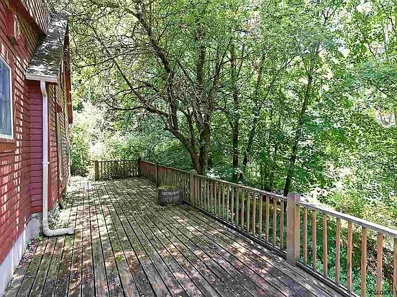 Cabin in the woods. Nestled in the trees. Peaceful but accessible. Needs work, waiting for someone with imagination to transform it into a personal paradise. Two houses on 75 acres: 2-bedroom main house with exposed post-and-beam framework dating to the early 19th century; second (modern) spa building with sauna, hot tub, guest bedroom (and/or dressing room), as well as a spacious attic workshop. A small but picturesque pond sits below the deck of the main house and a pair of streams run through the property and add to its charm.