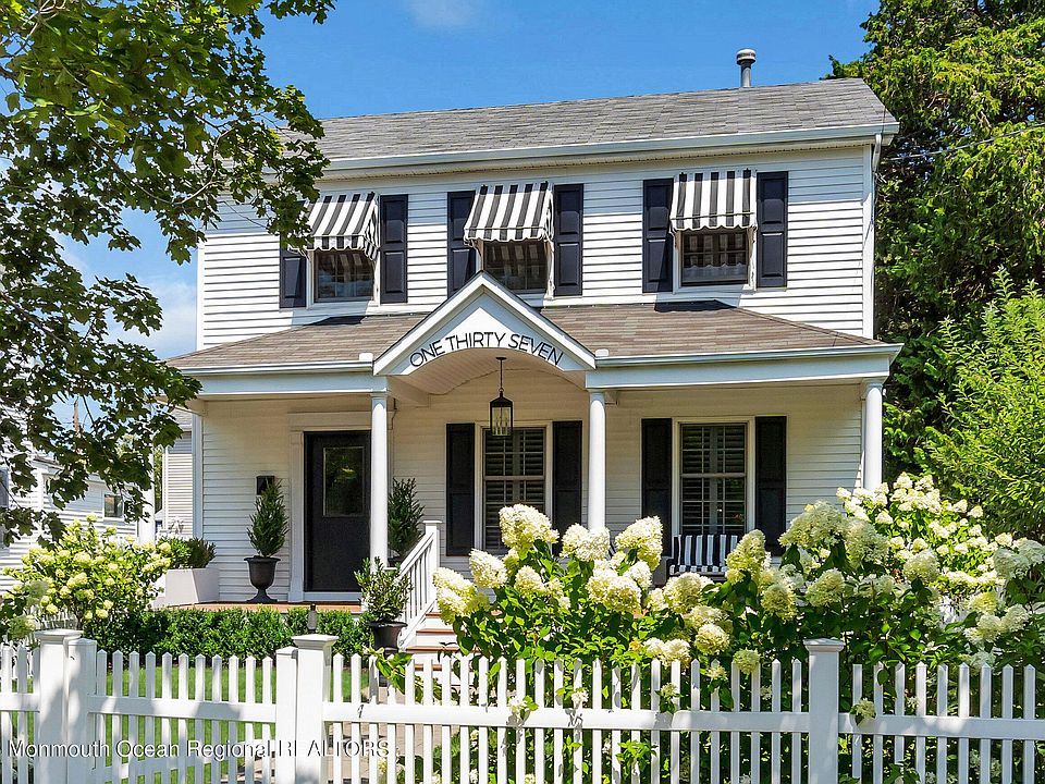 Just Charming! The house with the white picket fence, shutters, black and white awnings, white hydrangeas, and a rocking chair front porch on a delightful street in Fair Haven. Mastering the art of small-town charm and upscale chic, this 3BR 3.5 Bath home is magazine worthy. New hardwood floors throughout draw you into comfortable living areas. Overlooking the porch, a formal but not stuffy living room sets the tone for what's to come including the adjoining full, designer wallpapered dining room. The eat in kitchen sparkles with stainless steel appliances and new quartz countertops. An adjacent large family room has a cathedral ceiling, built ins, a gas fireplace and statement lighting. French doors lead you out to an easy maintenance deck a slate patio and a private, landscaped, fenced in yard.