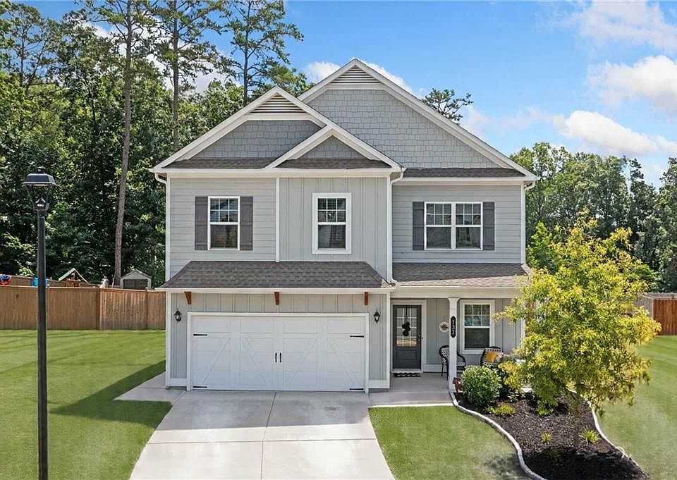 Welcome to this stunning 4-bedroom, 3-bath home that perfectly blends modern design with everyday comfort. Immaculately maintained and thoughtfully designed, this home boasts an open-concept floorplan with soaring ceilings and an abundance of natural light throughout. The spacious living area flows effortlessly into a beautifully appointed kitchen—ideal for entertaining. Featuring a large center island, sleek cabinetry, and granite countertops, this kitchen is a dream for any home chef. A convenient bedroom and full bath are located on the main level, perfect for guests or multigenerational living. Upstairs, enjoy a generous loft/den area—ideal for movie nights, gaming, or a cozy second living space. This space could also serve as an additional bedroom. The oversized owner's suite offers a private retreat with a luxurious en-suite bath. Two additional bedrooms, a full bath, and a well-placed laundry room complete the upper floor. Step outside to relax under the covered patio overlooking the private, fenced backyard—perfect for enjoying warm Georgia days. Located just minutes from downtown Ball Ground’s restaurants and shops, and situated in the sought-after Creekview School District, this home combines convenience, comfort, and style in one perfect package.