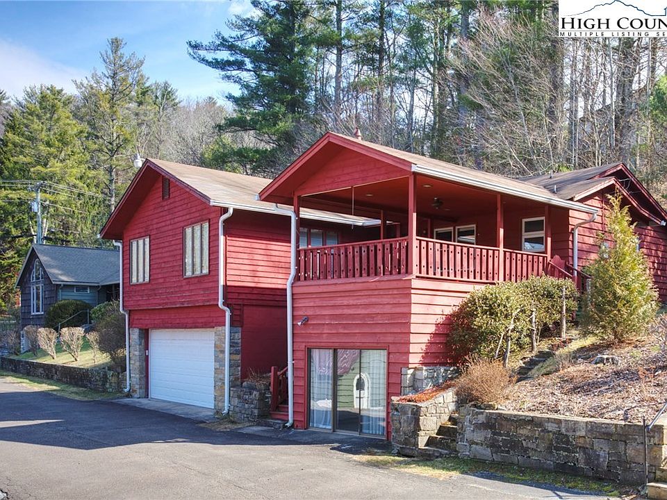 Want in town Blowing Rock with easy access, 3 BR/2BA, stone FP, great covered porch, 2 car garage?? Used for many years as a full time residence, this home now awaits a new owner's vision and would be perfect for either full time or second home use. Over 1500 SF of heated living area plus basement garage and also a separate unfinished basement area that could be used for storage, a golf cart garage, exercise room--whatever you need. Split floor plan with large master on one end with adjacent bath and laundry while the other 2 bedrooms are off the den and share the hall bath. Sweet den/dining/kitchen area has wood floors and stone fireplace and there is also a large multi-purpose room that offers expanded living area. The covered porch is your "window on the world" and looks across Blowing Rock Boulevard up