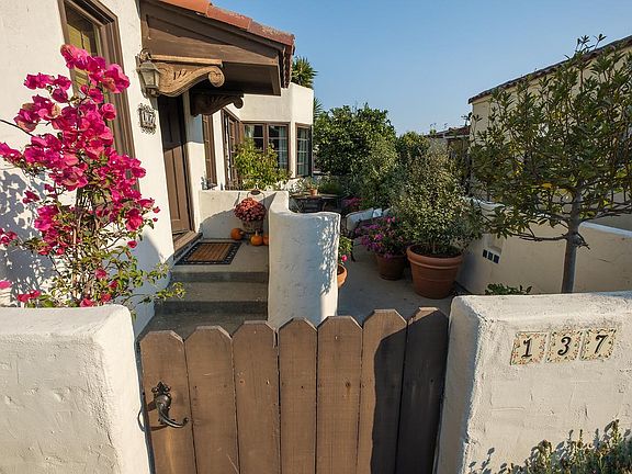 This delightful, Mediterranean home has the stucco finishes, arched doorways, and hard wood floors that characterize this popular, classic style. There are 3 bedrooms and 2 full baths with separate dining and living room areas. A year-old roof with new skylights brings even more light into the remodeled kitchen and bathrooms, and a cozy breakfast nook offers just the spot to work quietly over coffee with a view of the patio. The laundry room with pantry is located beside the kitchen, and is roomy enough for a second fridge/ or freezer. Outside, off the back deck, the re-roofed garage offers a handy workshop area for projects and tool storage. At the day's end, a beautifully tended back yard garden with Bougainvillea, Meyer Lemons, & other fruit trees draws hummingbirds galore.