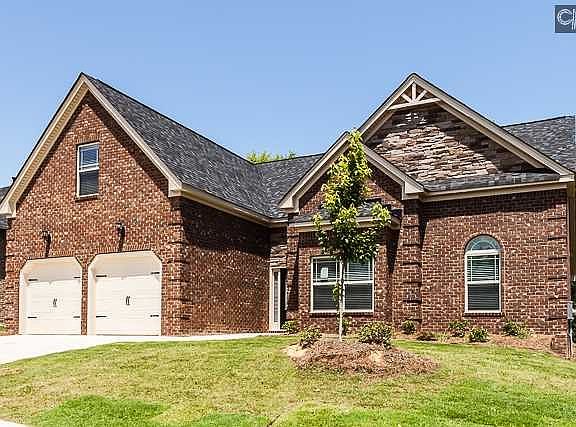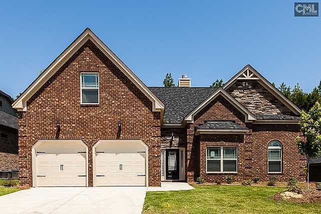 The Chesterfield - Beautiful open concept one story home with four bedrooms and bonus room (or 5th bedroom) over the two car garage. Private covered patio overlooking the large backyard. Open kitchen with granite counter tops, wall oven, gas range, tile backsplash, and Marsh pulled and staggared cabinetry. Owners suite offers a large private bath with tiled shower, garden tub, and double vanity. Vaulted ceilings found in most rooms even Great room. Coffered ceilings in Dining area. Hardwood flooring in foyer/kitchen and tile floors in all baths. Automatic irrigation included. Tankless hot water heater. Quiet community located in the heart of Lexington. Zoned for River Bluff High and only 5 minutes to the Lake Murray dam and park.