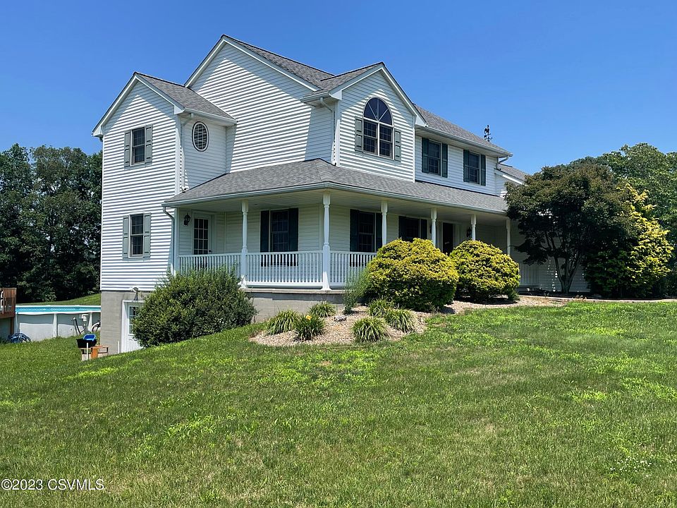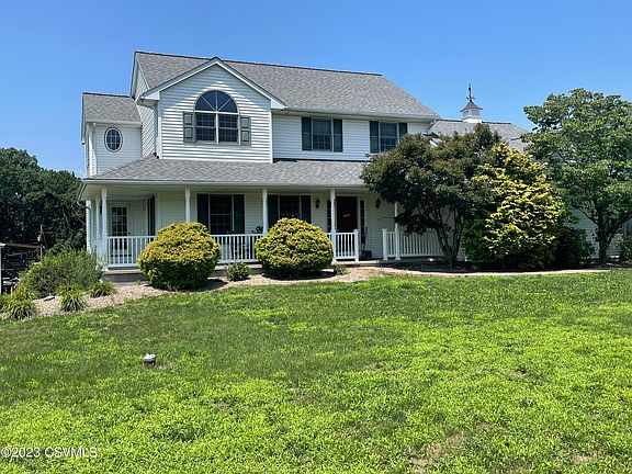 Stunning contemporary 2-story home on 1.61 acres with breathtaking mountain views. Featuring 4 bedrooms, 3 bathrooms, and a convenient first-floor laundry/mudroom leading to the attached two-stall garage. The master suite offers an impressive en-suite bathroom with a luxurious jacuzzi tub. Vaulted ceilings and a cozy fireplace adorn the family room, while a spacious office with a private entrance provides a dedicated workspace. Enjoy the sprawling wrap-around porch for relaxation. This exceptional property includes an open floor plan, new carpet, new roof, backyard fire pit, and a pool with a deck for entertaining. Located in a desirable community near Geisinger Danville .