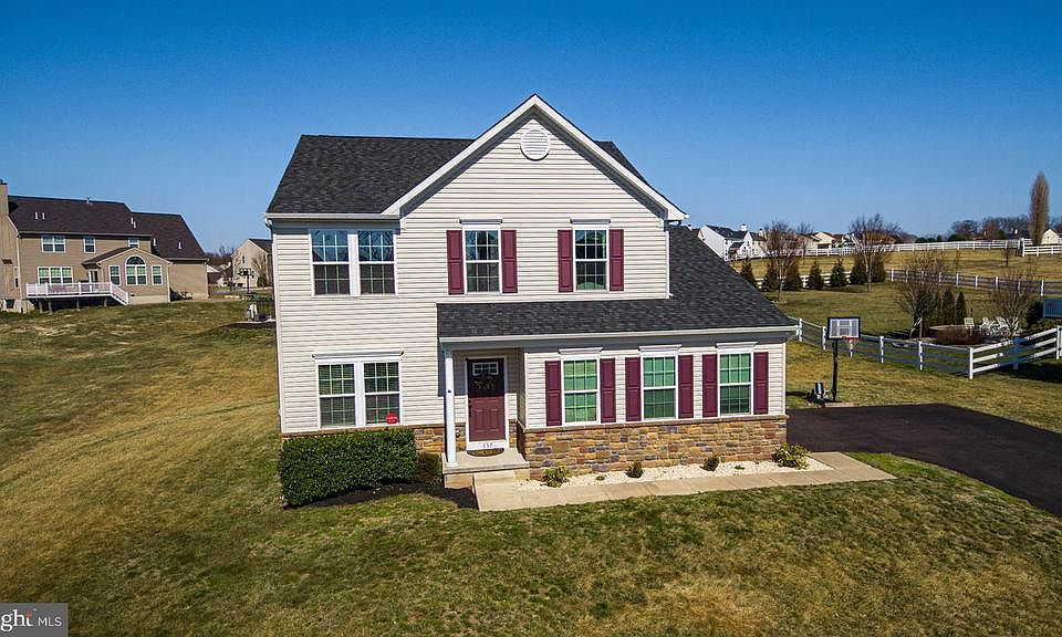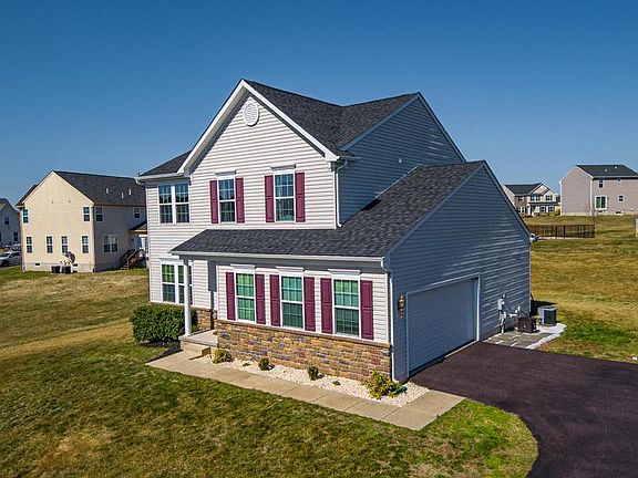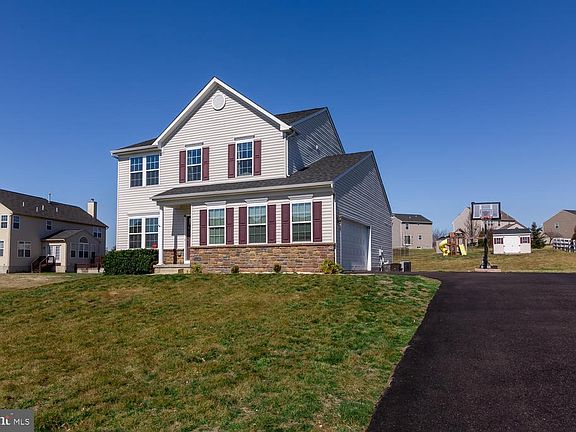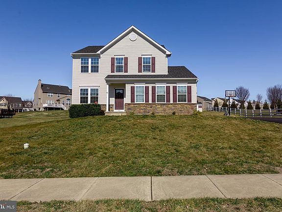 Look no further! This turn-key 4 bedroom 2.5 bath High Meadow, shows like new resale, has everything a buyer would ever need and care to ask for. With its large breathtaking .48 acre corner wrap around lot, its positioning and placement fosters ample room for plenty of outdoor entertainment that is perfect for kids, pets and outdoor family get togethers, thus making it one of the better open spacious lots in the community. Plenty of elbow room between you and your neighbors! The spacious well crafted sun filled open floor plan will surely grab your attention as you first enter the front door. Entering you are greeted by the formal living room and powder room which includes a marble sink and decorative crown molding. Continuing your inside journey, the gracious floor plan leads to a "great room" effect where the open family room, kitchen and morning/dining rooms makes for a warm and inviting concept. The generous sized family room with its handsome gas fireplace, ceiling fan, and wiring for surround sound makes this room the ideal place for your big screen television set up. Both chef and guest friendly, the generously sized perfectly placed custom kitchen is outfitted with upgraded expresso high custom cabinets, pantry closet, gas stove, garbage disposal, dishwasher, built in microwave, refrigerator, extra countertop breakfast bar like eating space, along with 6 recessed lights. The laundry room area has additional storage and leads to the 2 car garage that has both built in cabinets and door opener. Rounding out the main floor you have the dining/morning room addition picked as an extra option at time of purchase. This delight in feel, sun filled room boasts a cathedral ceiling and curtains that are included. Sliding doors from this room open to a spacious entertainment custom deck offering an extension to your exterior square footage ideal for barbequing, patio furniture relaxation and outside entertaining. Back inside, the second floor is whe