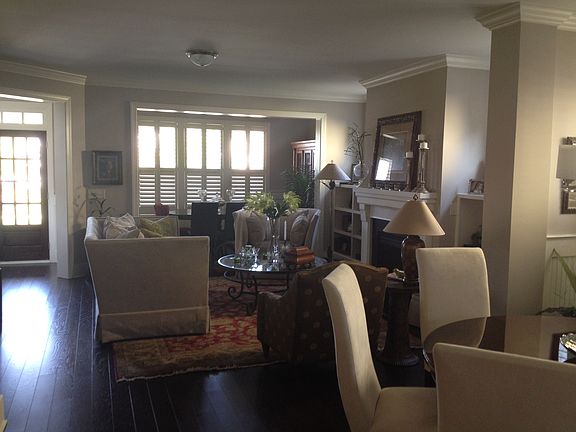 Desirable Sunset Oaks Green section Craftsman Home with brick foundation - shake details - hardwoods throughout first floor - master bedroom with sitting area and fabulous spa bath and walk-in closet - granite countertops and stainless appliances in kitchen with great work space island and designer cabinets-open dining room to family room and great nook/library area- beadboard wainscoting in dining room and foyer - custom plantation shutters and blinds throughout - finished third floor rec room - large secondary bedrooms - no neighbors in back - wooded lot overlooking "The Green" with stone patio and pergola - covered porch