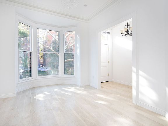 A rare offering. Stunning single family house on landmarked Milton Street in the heart of Greenpoint's historic district. This 5 bedroom, 4 story single family home has been meticulously restored and was just completed. Gorgeous details abound including original wood burning fireplace, original banister and moldings. Now upgraded with luxurious modern additions such as Lutron dimmers, recessed lighting, modern european baths with rain shower, wall hung toilets and electric in-mirror lighting. There are 3 lovely outdoor spaces: a front garden, rear garden and roof terrace with empire state building views. Truly a unique opportunity to rent an entire, mint condition private townhouse in the center one of Brooklyn's most desirable neighborhoods. *price is net effective on a 13 month lease No Airbnb Allowed