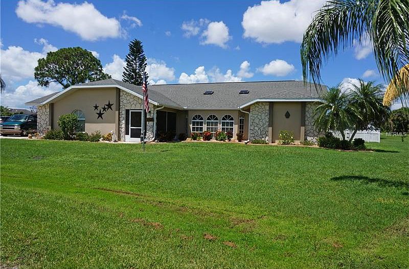 IMPRESSIVE 4 Bedroom, 2 Bathroom home with Bonus Room and attached oversized 2 Car Garage. This home is located in a quiet cul-de-sac on TWO LOTS ( a little over a half acre) in the desirable deed restricted community of DEEP CREEK. NOT in a flood zone. County water and sewer. This spacious light and bright home offers an open and split bedroom floor plan with formal Living Room, separate Dining Room, well appointed Kitchen, Family Room and Inside Laundry. The Kitchen features a breakfast bar, stainless appliances, wood cabinets, closet pantry and dining area. The spacious Family Room has tile flooring and a cathedral ceiling. There are 3 generous guest bedrooms and the guest bathroom with dual sinks and tub/shower combo is also a Pool Bath! A Bonus room can be whatever suits you: a sewing room, craft room, den/office or even Bedroom # 5! The spacious Master Bedroom suite has TWO walk in closets, garden tub, separate shower, vanity and lanai access. Your living space extends via pocket sliding glass doors to the screened lanai and pool area. There is an inground heated saltwater pool with lovely waterfall, a large covered lanai and open paver deck for sunbathing. The large back yard is fenced and the property features fruit trees and beautiful lush tropical landscaping. Features in this home include double door entry, arched windows and doorways, skylights, security system, tankless HWH, water softener and more. This spectacular home is perfect for a family or those expecting winter visitors!