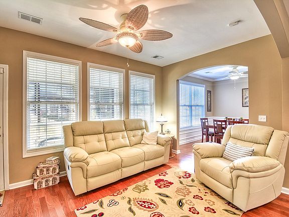 3bed/2ba, Sold Fully Furnished Home with furniture, art, lamps and decor, Fenced, ON THE LAKE and MOVE-IN READY in sought-after Myrtle Trace Grande. Tons of room with this very open floor plan and cathedral/vaulted ceilings throughout. Living room seamlessly connects to the Carolina Room/ Sun Room, which open onto a large Screen porch which then opens onto an extended poured patio, perfect for grilling and entertaining. Primary bedroom has large sitting area, large full bath and custom walk in closet. Large kitchen offers lots of room with upgraded cabinets, bar seating and quartz countertops. Split bedroom floorplan creates nice privacy for visitors. Many recent updates including: whole house newly professionally painted, new LVP flooring in bedrooms, new stainless steel range and microwave, professionally landscaped with beautiful palm trees and pond view. Upgrades include: quartz countertops with tiled backsplash and undercounter lighting, cherry engineered hardwood in living area, extended master bedroom suite, screened porch, extended concrete patio when you step outside from the screened porch, four-foot wrought-iron style fence made from aluminum, whole-house water filtration system, irrigation system, and outside security lighting. This is a 55+ community with wonderful amenities. HOA fee includes trash pickup and pool service. Myrtle Trace Grande community has a nice pool and clubhouse for its residents to enjoy. Short drive to everything Myrtle Beach has to offer including: Myrtle Beach International Airport, Broadway At The Beach, The Market Common, Coastal Grande Mall, 2-Tanger Outlets, and Coastal Carolina University (CCU),marinas, public docks, landings, restaurants, golf courses, shops, entertainment. Also, only 90 miles south to beautiful Charleston, SC