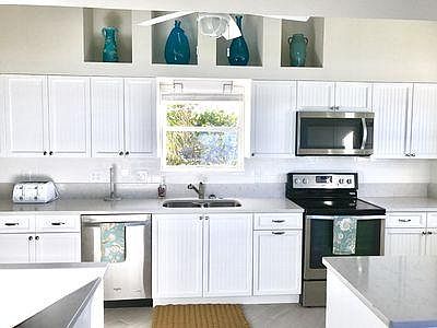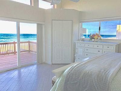 This beautiful 4-bedroom, 3-bath vacation rental home offers accommodations for up to 13 guests. Perfect and ideal for families, couples or friends traveling together. Whether you enjoy fishing, reading, biking, swimming, shopping this vacation home is for you!! 180 feet of direct private ocean and beach front on exclusive Jupiter Island. It is the 5th house down from where the road ends and has a direct unobstructed view of 6 miles of oceanfront nature preserve all the way up to the Stuart Inlet. Jupiter Island has only 600 residents. It is an exclusive enclave for people who value privacy and proximity to nature. As such it is extremely private and can only be entered by two bridges over the inter-coastal waterways. Not only is this home private but it is safe. As a vacationer you can relax and forget the hustle and bustle of the outside world, as you are lulled by the ocean waves and beach, surrounded by the nature preserves on all sides. Vacationers have the best of both worlds- enjoy the seclusion of the nature sanctuary or travel minutes away, over the inter-coastal waterways to restaurants, shops and entertainment in Jupiter and Hobe Sound. It offers 3,000 square feet of space sprawled out over two stories with two separate living spaces. -Top floor offers a master bedroom/bathroom with breathtaking views of the ocean and also upstairs is a second bedroom with an additional updated bathroom. The living/dining area combined make for a great place to enjoy your time, kick back and relax and take in the magnificent ocean views. Attached to the living/dining area-with an open concept feel is a fully updated kitchen with brand new appliances. The top floor also boasts a spacious outdoor 55 ft deck that spans the entire length of the home, with an ocean view. Included on the deck is a brand new gas grill, fire pit and seating area. -Lower floor offers two bedrooms, one full bathroom an eat in kitchen and living area with a sleeper sofa. Home has a one car garage with additional driveway space, an outdoor shower, large laundry room with brand new washer/dryer and freshly updated landscaping.