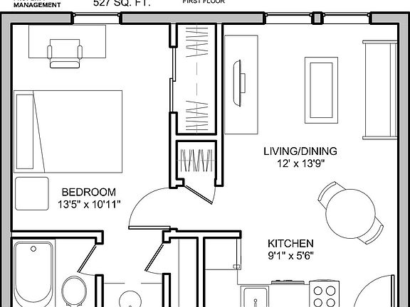 - Total interior livable area: 527 sqft
