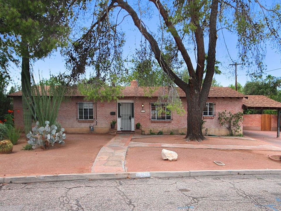 For more information on this property, contact the Listing Agent, Sheila Beal at (520) 918-6592 or sheilab@LongRealty.com. Wonderful Sam Hughes mid-century brick home with lovely curb appeal. The 3 bedroom/2 bath home is complete with inviting, cozy wood beamed ceiling in dining and living rooms with fireplace, cute white galley kitchen with ample storage and carefree concrete, antique tile and wood floors. Entertainer's delight in private backyard with multiple brick patios, ramada and fountain surrounded by mature shrubs and trees. Close to all amenities that downtown and UofA have to offer. So many possibilities! Make this your own!