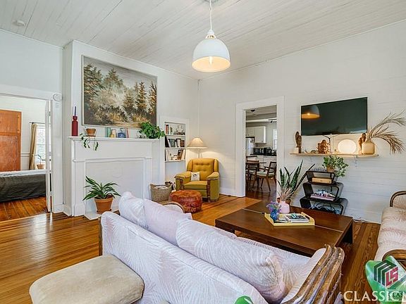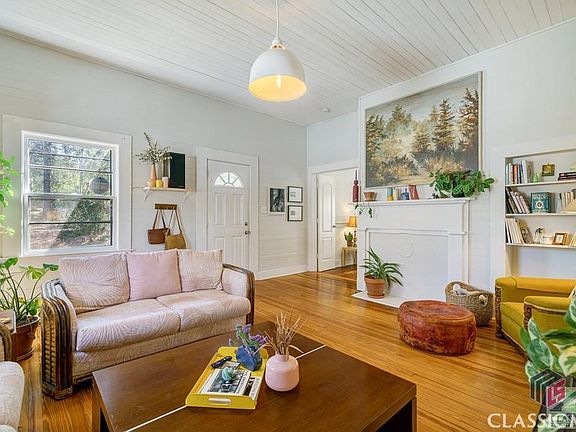 Here is your chance to purchase a quintessential Chicopee-Dudley cottage just moments from The University of Georgia, Downtown Athens, Dudley Park, Oconee River Greenway, and Firefly Trail! Decorated to the hilt with Midcentury Modern furnishings and unique fixtures, this 1930s home exudes historic charm with trendy flare! 10ft + ceilings in the living room and Owner's Suite. Original, heart of pine flooring runs throughout the home. The living room is bright and spacious and features decorative fireplace and tongue in groove walls. More natural lighting is found in the Owner's Suite with remodeled ensuite bathroom to include new flooring and a converted midcentury dresser as bathroom vanity. A laundry room is located off the bathroom and leads to a sizable covered porch. Dining room/ kitchen combo features a large island, new sink, all appliances, and hardwood flooring. A second bedroom is perfect for guests and is also utilized as a home office. Entertain friends and family in the fenced backyard with fire pit! If you like walking trails, this is the home for you as the Greenway and Firefly Trail are within minutes of this adorable home. HVAC and ductwork replaced in 2020, updated insulation, and much more! Call your Realtor today to schedule a private tour.