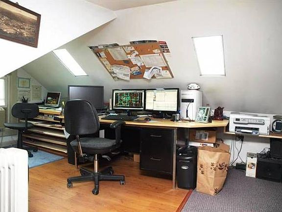Large home is a legal 2 family but certainly will work well as a large single family home. Well maintained home features oversized 2 car garage. 1st flr features large living room and 2 bedrooms. 2nd flr features 1 bedroom and bonus finished attice currently used as an office. Many updates throughout. Parking for up to 4 cars. Newer roof @ 1 year full strip off. Charming screened side porch. Enjoy the view from the second floor roof deck. Conveniently located walk to schools, transportation, and shopping.