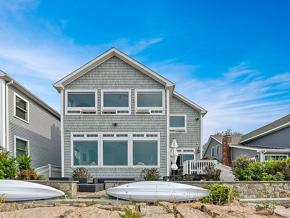 "Magical" best describes this Magnificent Waterfront Home located on Oyster River Bay on Long Island Sound... Welcome to the West shore of beautiful West Haven CT. Soak in the awe-inspiring ever-changing views of the beach and long island sound. Go for a walk on the sandy beach in search of sea glass or go kayaking, sailboarding, fishing or just enjoy the view. Built in 2013 this Westshore home was built to last using the finest building materials and built energy efficient for easy care. The Main home exterior has Hardy Board Siding, and a Navien heating and a tankless water System and programable thermostats. Step into the home and you are greeted with a spectacular wide angel unobstructed view of Long Island Sound and all its glory. The open concept living has 9 ft ceilings a spacious Living Room with Gas fired Fireplace and a separate Dining Area off the kitchen with a huge granite topped Island with custom built-in cabinets and drawers below for extra storage. The Chef's Kitchen has a granite countertop, a new stainless-steel Fisher & Paykel 8 burner Gas Stove, a pot filler, a new built in SS GE Advantium wall oven/microwave, and a SS DCS double dishwasher. Just off the Living room is a raised deck for intimate dining that leads to the lower stone patio which is the full width of the house offering loads of room for exterior entertaining. Finishing the Main Level there is a custom-built Hutch with wine rack, a powder room with a granite topped vanity and Laundry with New Full-Size Washer and Dryer and built in cabinets. Moving upstairs you will find two very spacious bedrooms, a full guest bath with granite top, a sizeable hall closet and the Primary Suite. Entering the Primary bedroom, one is greeted with panoramic endless views of Long Island sound and Oyster River Bay overlooking Woodmont by the Sea. The Primary bath has a granite double sink vanity, oversized shower and a whirlpool bath overlooking the water... Heading outside to the 2-car garage we walk through the very private rear yard with its beautiful exotic plantings and into the garage. The entire garage was recently redone - with new exterior cedar shakes, new roof, new gutters, new overhead door, new interior and exterior people doors, new windows, and skylights. Head up the stairs to the 676 sq. ft. Artist loft above, which was gutted and renovated as well. The Artist Loft is a perfect retreat for Artist, Writer, Private retreat or with permits and adding a bath a perfect guest suite! Plenty of off-street parking and very commutable - just mins to the Metro North/Amtrack train station- I-95 and I-91 and Merritt/Wilber Cross parkways. FYI...Flood Insurance is transferrable and only $2,173 yr. Furnishings are for sale.