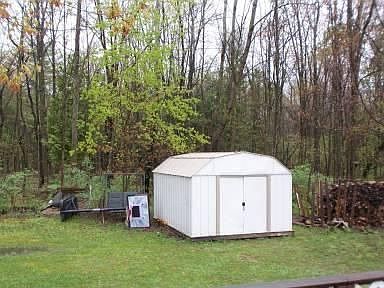 1996 28' x 56' Doublewide with 3 bedrooms, 2 baths, huge eat-in kitchen with island and appliances, living room, laundry room with washer and dryer, rear deck, covered front porch and shed.