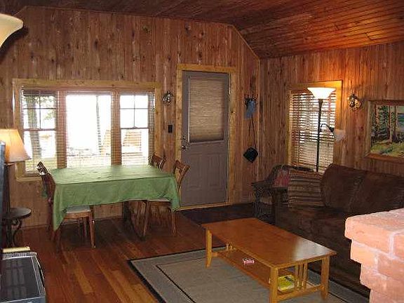 PRISTINE HIGGINS LAKE. A very secluded location in historic Pinewoods Camp, a Private Association. Sitting on top of a bluff overlooking beautiful Higgins Lake, Treasure Island Views. With 82' of water frontage, this 3 bedroom cottage has vaulted ceilings, hardwood flooring, lakefront master bedroom, brick wood burning fireplace with insert. Many updates throughout this cottage. Large covered deck on the lake side of this home. New staircase and tiered decking down to the lakeshore. Current owners do not use the dining hall in the summer months, new owners may elect to do so. Caretaker fee in $600 per year.