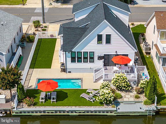 Welcome to your dream beach home! Built in 2019, this stunning custom-designed 4-bedroom waterfront home offers the perfect blend of modern luxury and laid-back beach living. Beautifully styled and decorated, this home is being sold fully furnished. Nestled just moments from the sand with a heated, saltwater pool and direct boat access, making this home a true paradise for water lovers. Step inside to discover bright, open concept living space with high-end finishes, cathedral ceilings and a gas fireplace. The chef’s kitchen features GE Café appliances, tile backsplash and a large quartz island. Enjoy the convenience of first floor living with two entry-level bedrooms, including the primary suite. Seamless indoor-outdoor flow, perfect for entertaining or relaxing in your own slice of paradise. The backyard is highlighted by the sparkling pool, low maintenance landscaping, private outdoor shower and large attached storage shed. New bulkhead in 2019 with 60 ft of composite dock and boardwalk. This beach home has been meticulously maintained by the original owners and never rented. Whether you’re soaking up the sun, launching your boat, or strolling to the nearby beach, this property offers an unmatched lifestyle on the water.