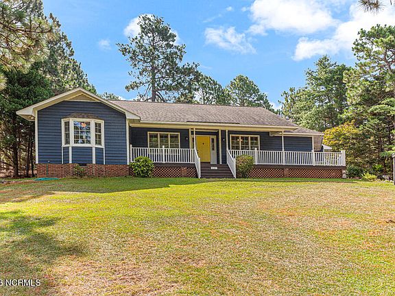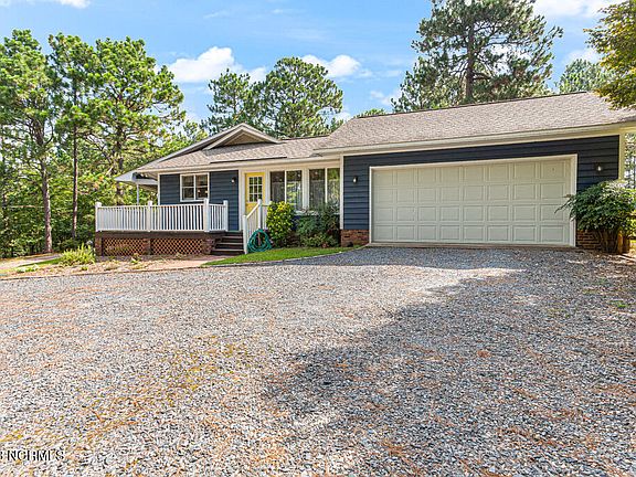 This charming home is truly one of a kind! Located in the private and gated community of Seven Lakes North. Amenties are plentiful from spring-fed lakes, playgrounds, picnic cabanas with charcoal grills, sandy beaches and pool, tennis, basketball and pickelball courts. The home is nestled nearly center on the large and fully fenced yard and is elevated with the lake across the street. The covered and wrap around front porch is a perfect welcome for guests. The foyer is inviting leading into the living room with fireplace and doors to the back deck and rear yard. The kitchen is the heart of the home with plenty of space for gathering, baking or creating culinary masterpieces. The light and bright room full of windows and two exterior doors, leading to the garage, is a perfect sitting room/mud room or plant haven! The windows in this home add to the charm and uniqueness. Two nice sized bedrooms with full bath and a large owners suite round out the details in the home. There is a formal dining space that is currently utilized as a home office. Use as you see fit but this home offers a lot of flexibility in space. Separate laundry room with shelving. Schedule a showing today to experience this warm and inviting home.