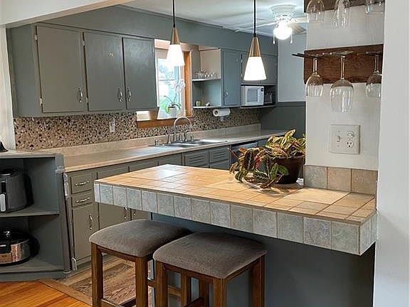 Gorgeous partially fenced lot, large deck w/SunSetter awning, newer metal roof, beautiful hardwood flooring. Custom back splash and breakfast bar in the applianced kitchen. Newer windows, HWT and updated electric w/outside 220 breaker box and additional, 15A & 20A in the garage. So many extras on this home to mention! Just 1/2 block from the lake with gorgeous sunsets. ALL OFFERS will be presented on 5/22/22 **Hot Tub and Fridge in Bsmt not included